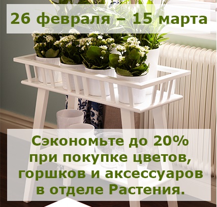 цветов , горшечных растений , декоративных горшков и аксессуаров для ухода за растениями. Также в период с 26 февраля по 09 марта действует специальная цена на