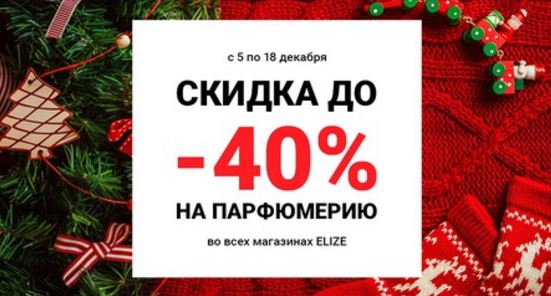 С 5-ого по 18-ое декабря! Во всех магазинах сети ЭЛИЗЭ и в интернет магазине Elize.ru! Скидки до - 40% на парфюмерию!