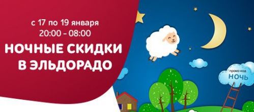 В период, указанный в п. 1 настоящих Правил, при заказе товара с 20:00 до 08:00, участвующего в Акции на сайте www.eldorado.ru, либо через терминал в Пунктах интернет-магазина или в Интернет гипермаркете покупатель может получить скидку на определенный товар.